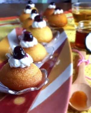 17. Guarnite i vostri babà con crema pasticcera, oppure panna montata, frutta fresca, oppure amarene sciroppate.