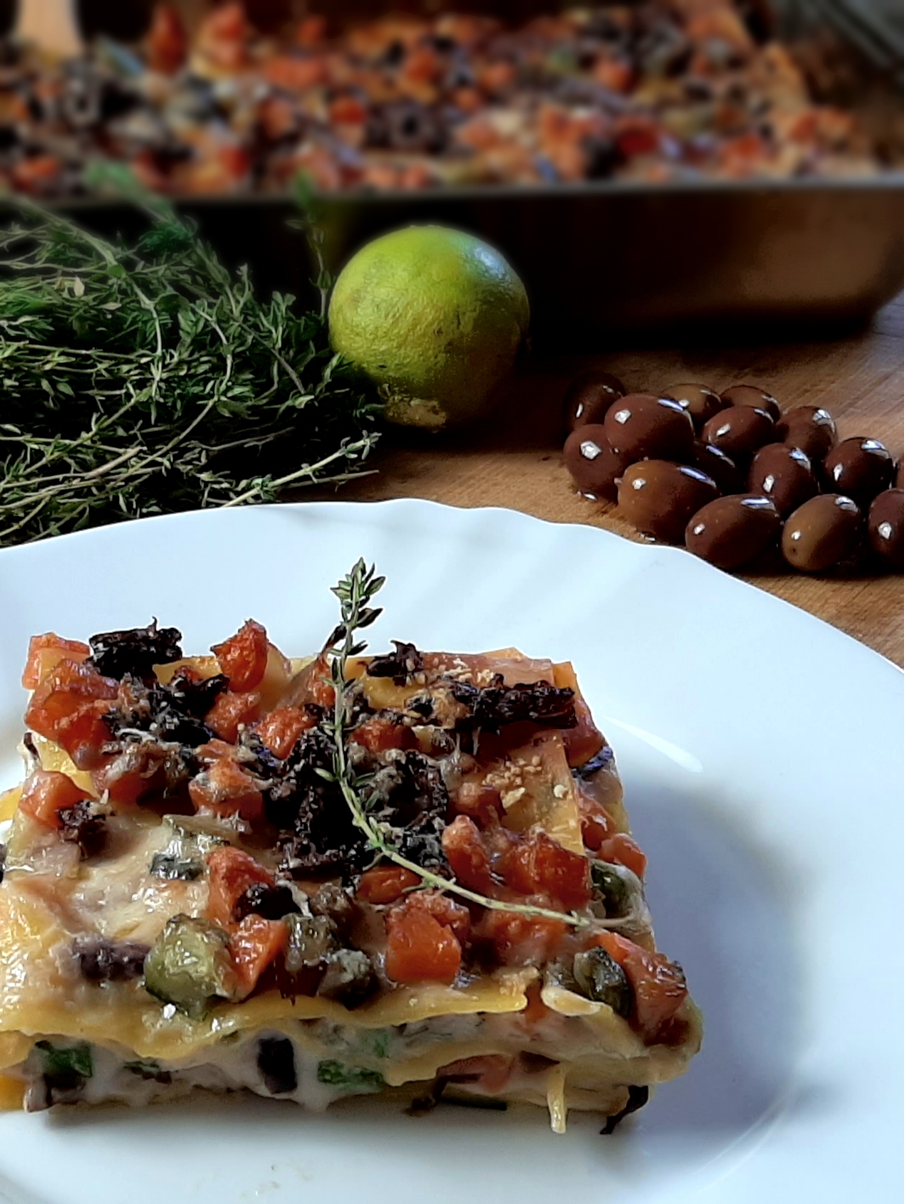 12. A cottura ultimata aggiungere la buccia di lime grattugiata mettere da parte due mestoli di salse e unire nella restante parte le olive taggiasche tritate e le verdure scolate (conservandone un mestolo per la superficie). Coprire con pellicola a contato.
