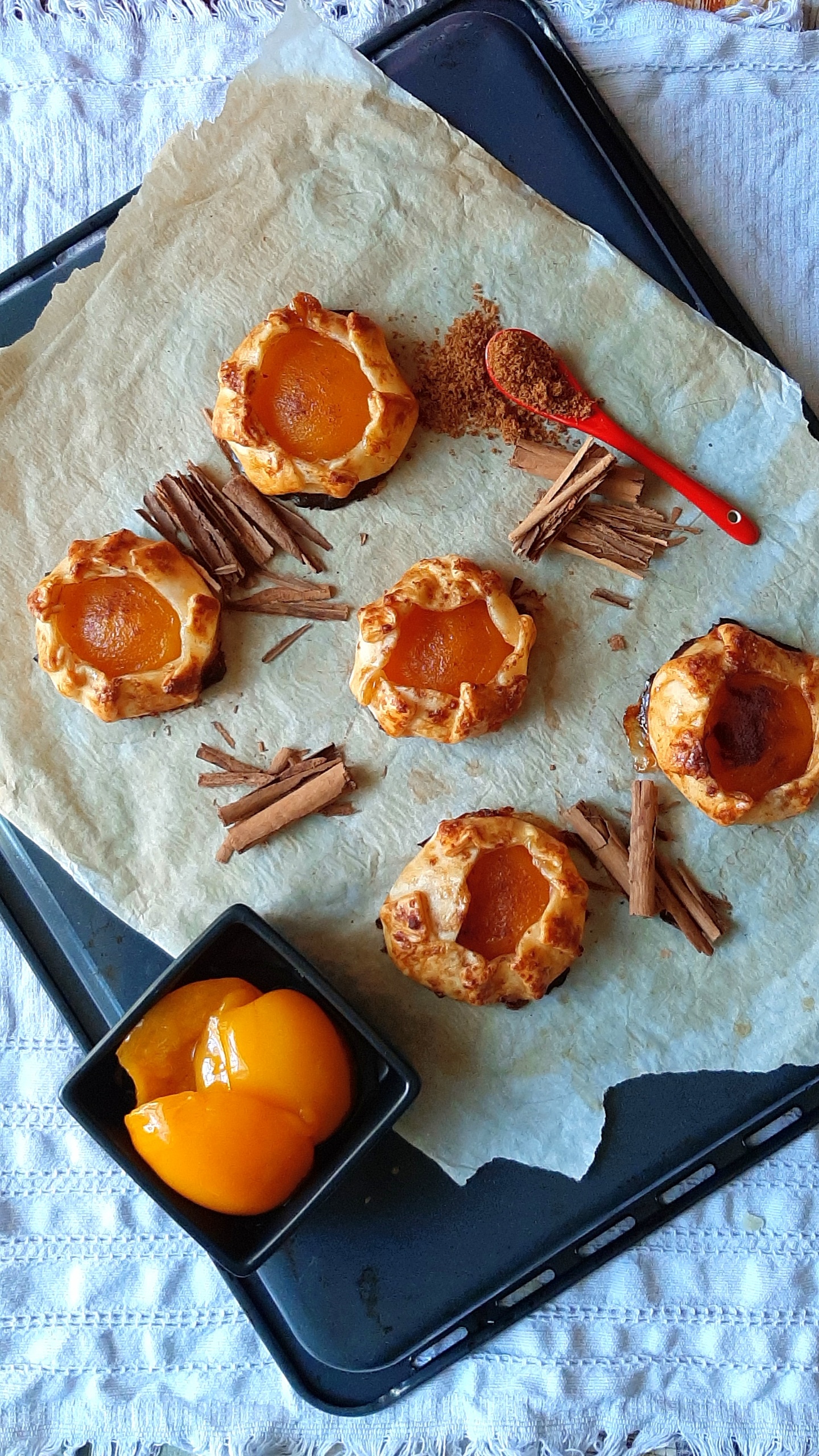 Con la brisée pronta e le pesche sciroppate.